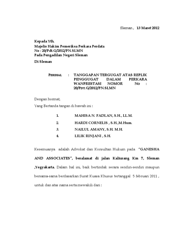 Contoh Surat Reflik Jawaban Tergugat Panduan Kimia Riset from 1.bp.blogspot.com Maybe you would like to learn more about one of these? We did not find results for: Check spelling or type a new query.