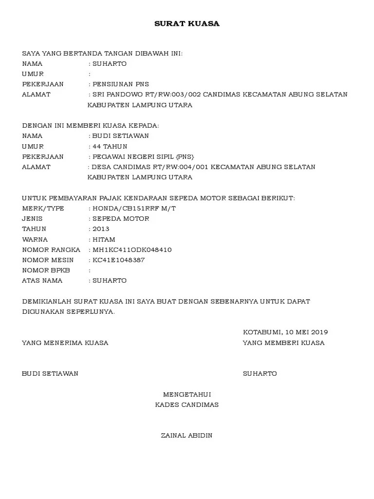 Surat kuasa ini umum diaplikasikan untuk kendaraan seperti motor dan. Contoh surat kuasa pengurusan pembayaran pajak sepeda motor digunakanuntuk pembayaran pajak kendaraan jika pembayaran tersebut diwakilkan. Contoh surat kuasa perpanjangan stnk kendaraan bermotor roda 2. Yang menerima kuasa yang memberi kuasa . Surat kuasa yang bertanda tangan dibawah ini :